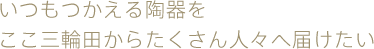 3月11日東日本大震災で被災された皆様には心よりお見舞い申し上げます。 ここ石巻でも甚大な被害となっております。多くの方が亡くなり、多くの心が傷ついた震災でした。 復興にはまだまだ時間がかかりますが、皆様の支援と温かい心遣いのおかげで一歩進む勇気を頂きました。本当にありがとうございました。幸い窯は無事でしたので、これからも誠心誠意造り続けて行きます。 今後ともよろしくお願い申し上げます。